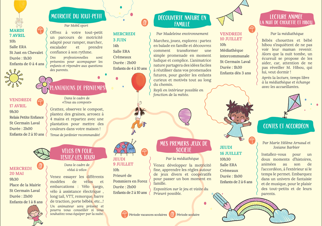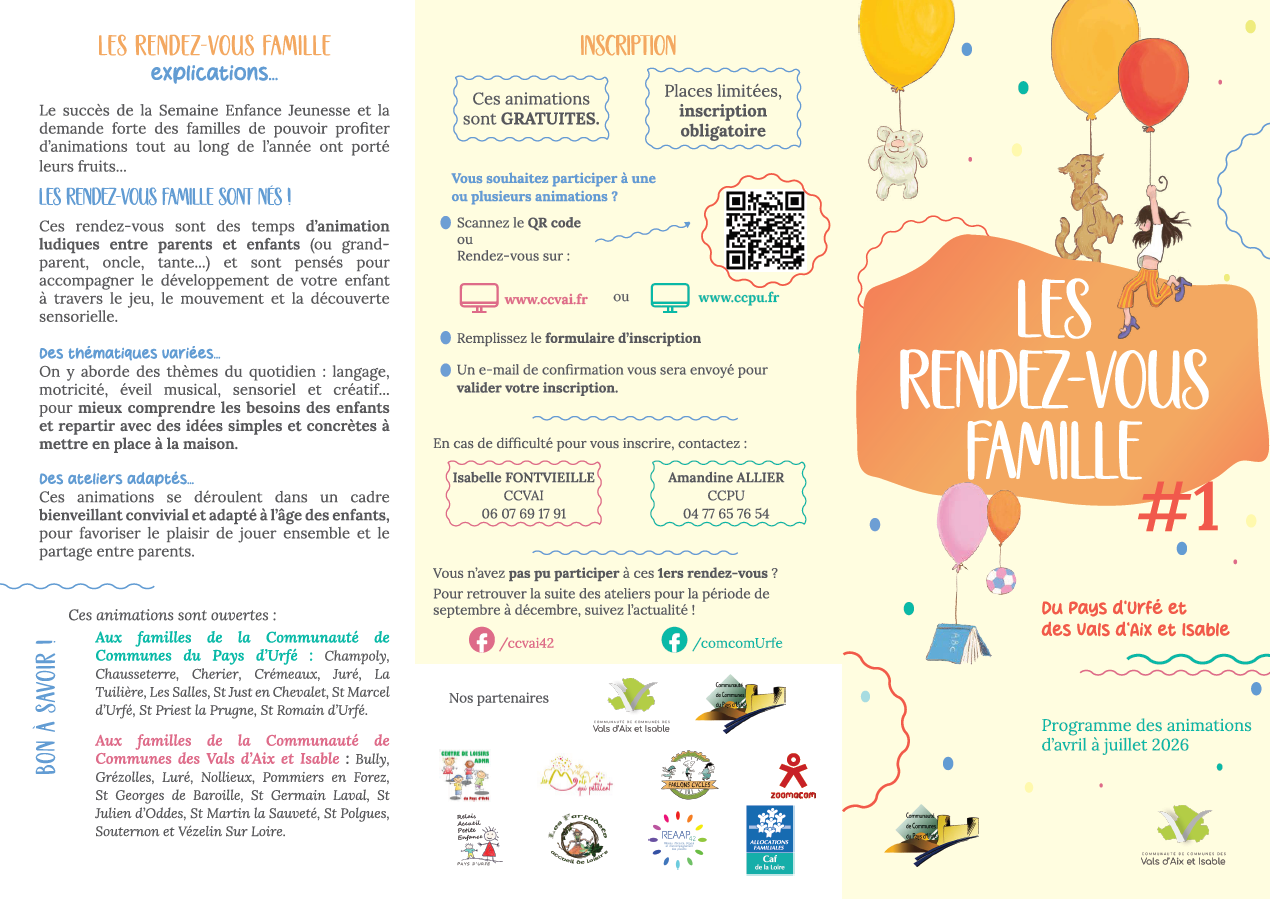 Dans la continuité de la Semaine Enfance Jeunesse, et suite à vos retours, les communautés de communes du Pays d'Urfé et des Vals d'Aix et Isable font évoluer leursactions en direction des familles, en proposant désormais des rendez vous tout au long de l’année.